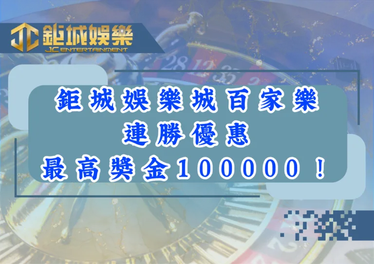 鉅城娛樂城百家連勝優惠,最高獎金100000…